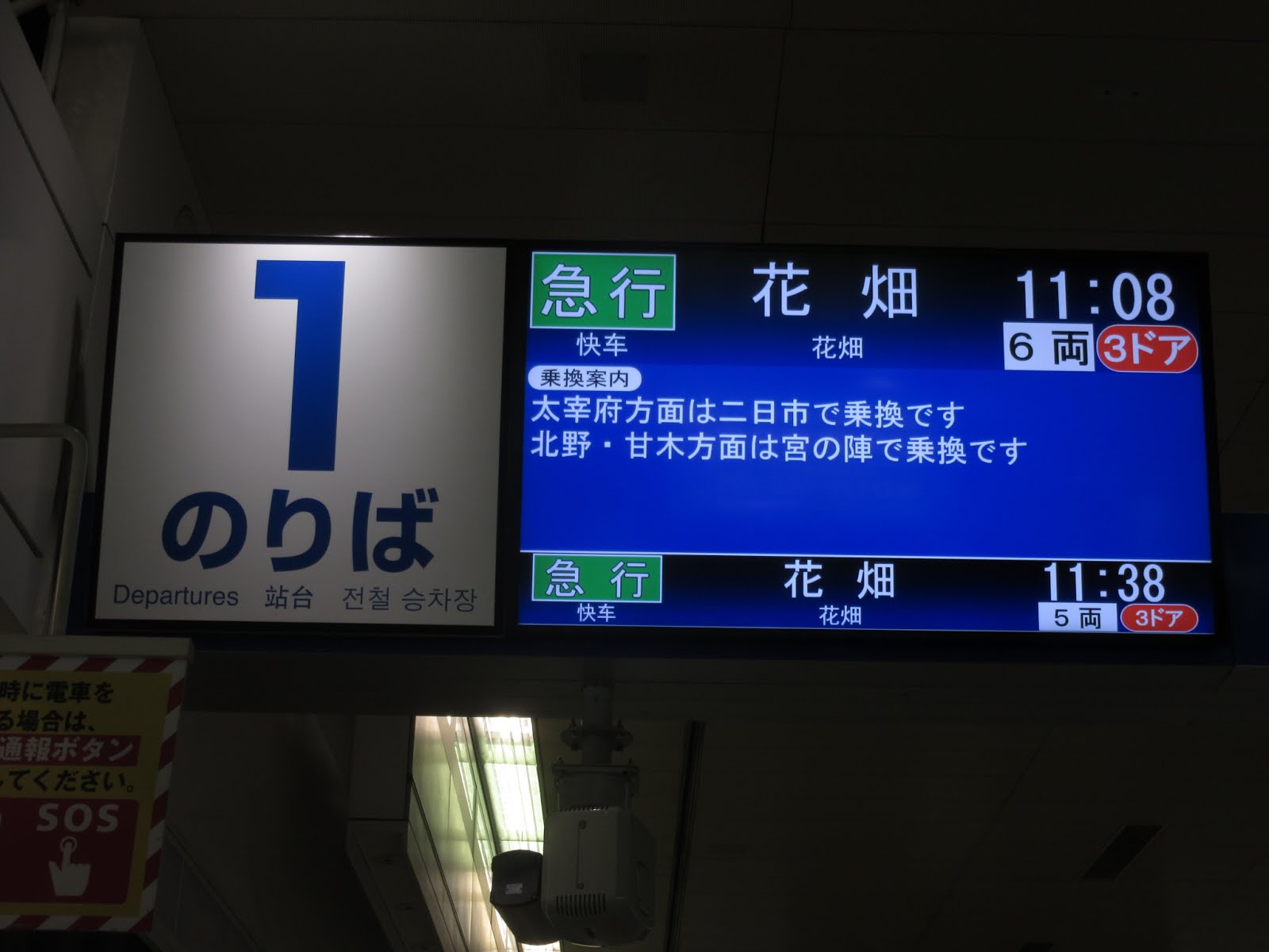 常に太宰府行きののりば案内が表示されています。