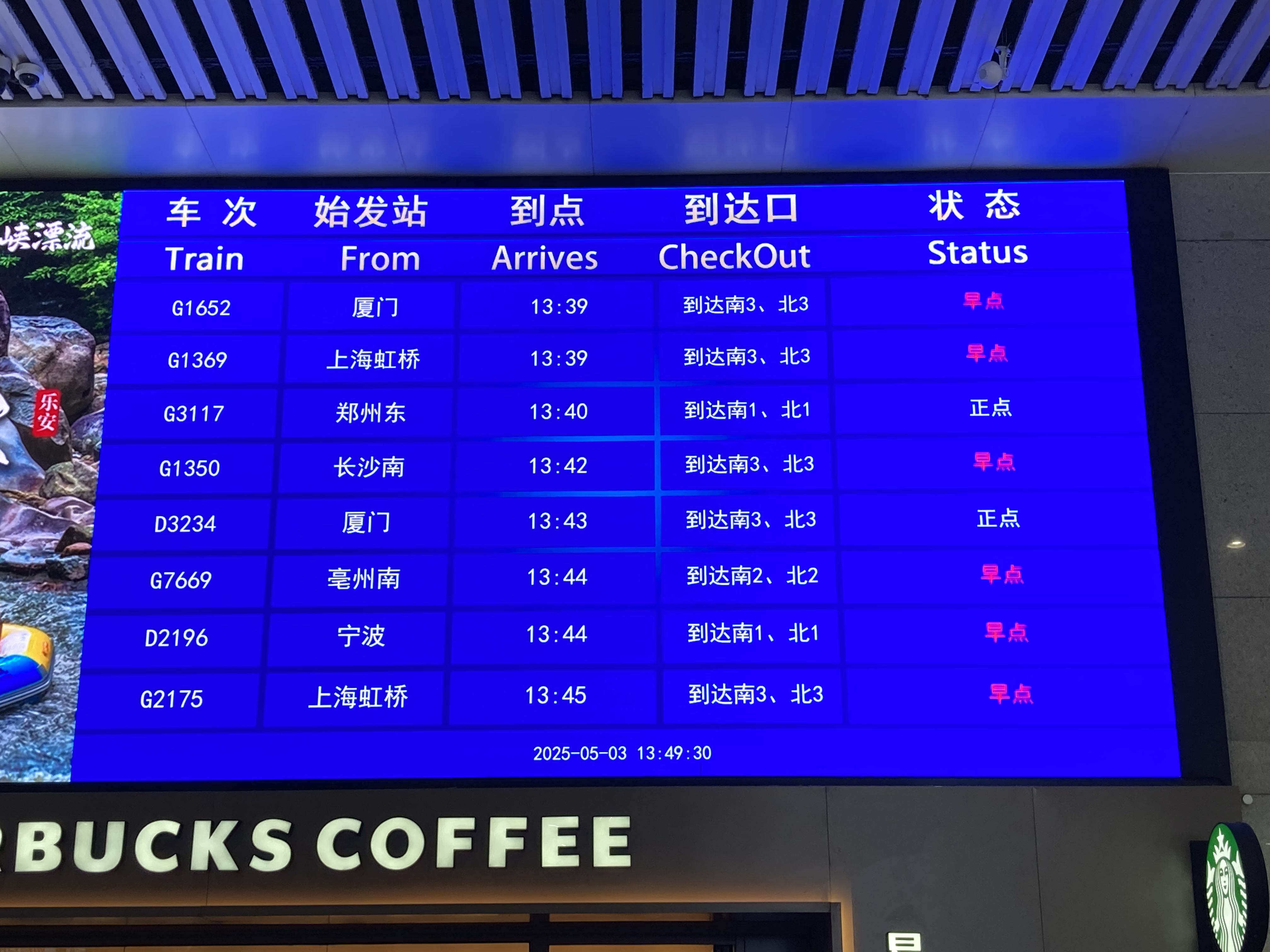 表示する列車がない場合の表示「杭州東駅へようこそ」